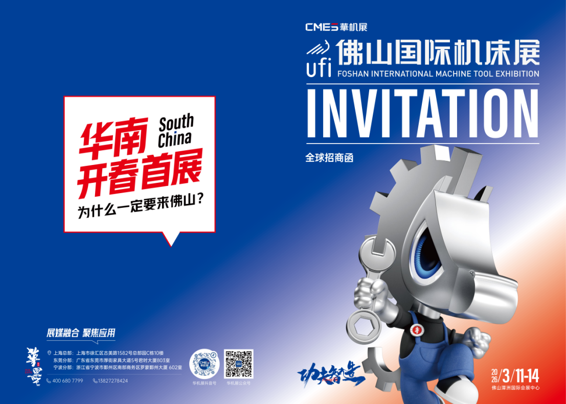 一年之计在于春,开春就来华机展!第6届CMES华机展|佛山国际机床展定档2026年3月11-14日,是当之无愧的华南开春展。作为华南开春的机床展,佛山国际机床展将协同机床产业链企业,以40000㎡展览面积、600+展商,多面覆盖金属切削机床、金属成形机床、磨削工量具、工业自动化及机器人、机床附件等机床品类,抢跑开春复工关键节点,助力抢占先机。