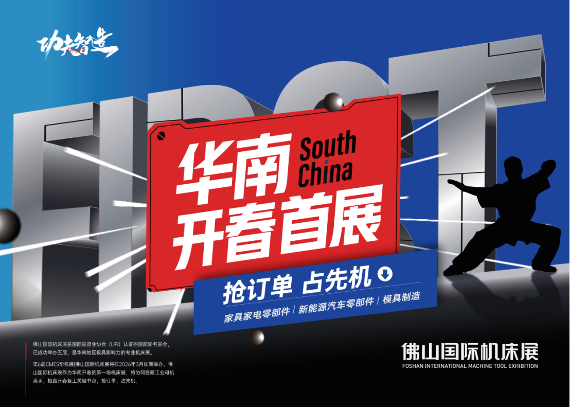 一年之计在于春,开春就来华机展!第6届CMES华机展|佛山国际机床展定档2026年3月11-14日,是当之无愧的华南开春展。作为华南开春的机床展,佛山国际机床展将协同机床产业链企业,以40000㎡展览面积、600+展商,多面覆盖金属切削机床、金属成形机床、磨削工量具、工业自动化及机器人、机床附件等机床品类,抢跑开春复工关键节点,助力抢占先机。